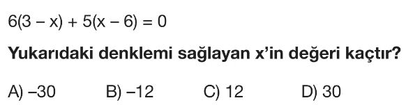 📝7. Sınıf Birinci Dereceden Bir Bilinmeyenli Denklemi Tanıma ve Kurma - Denklem Çözümü Test 6