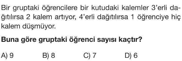 📝7. Sınıf Birinci Dereceden Bir Bilinmeyenli Denklem Kurmayı Gerektiren Problemler Test 9