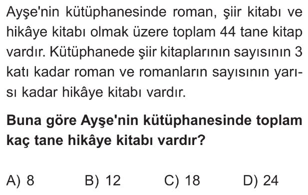 📝7. Sınıf Birinci Dereceden Bir Bilinmeyenli Denklem Kurmayı Gerektiren Problemler Test 8
