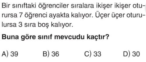 📝7. Sınıf Eşitlik ve Denklem Test 3