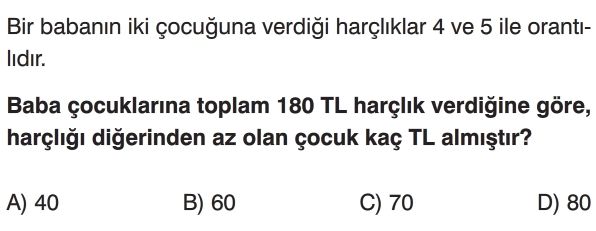 7. Sınıf Doğru Orantı ve Ters Orantı Test 4