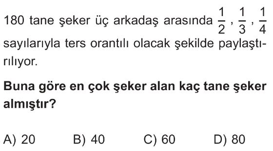 7. Sınıf Doğru Orantı ve Ters Orantı Test 9