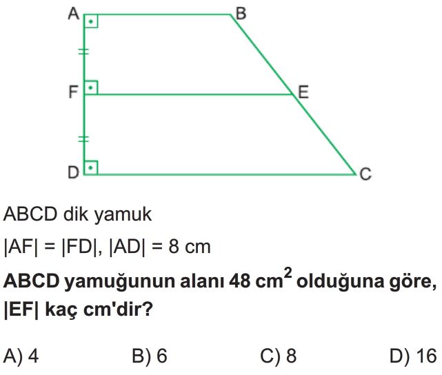 📝7. Sınıf Eşkenar Dörtgen ve Yamuğun Alanı Test 5