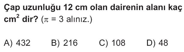 📝7. Sınıf Dairenin ve Daire Diliminin Alanı Test 5