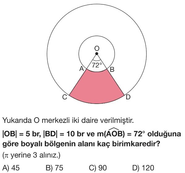 📝7. Sınıf Dairenin ve Daire Diliminin Alanı Test 5