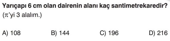 📝7. Sınıf Dairenin ve Daire Diliminin Alanı Test 5