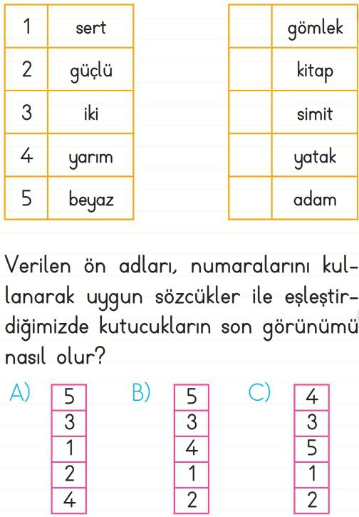 3. sınıf Ön Ad - Adıl - Eylem Test 1