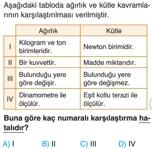 7. Sınıf Kütle ve Ağırlık İlişkisi Test 2