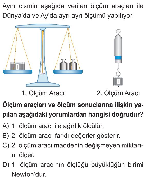 7. Sınıf Kütle ve Ağırlık İlişkisi Test 7