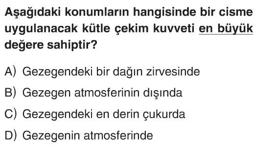 7. Sınıf Kütle ve Ağırlık İlişkisi Test 7