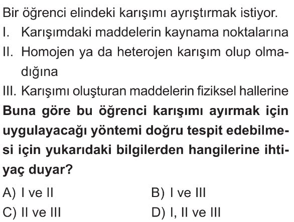 7. Sınıf Karışımlar Ayrılması Test 2