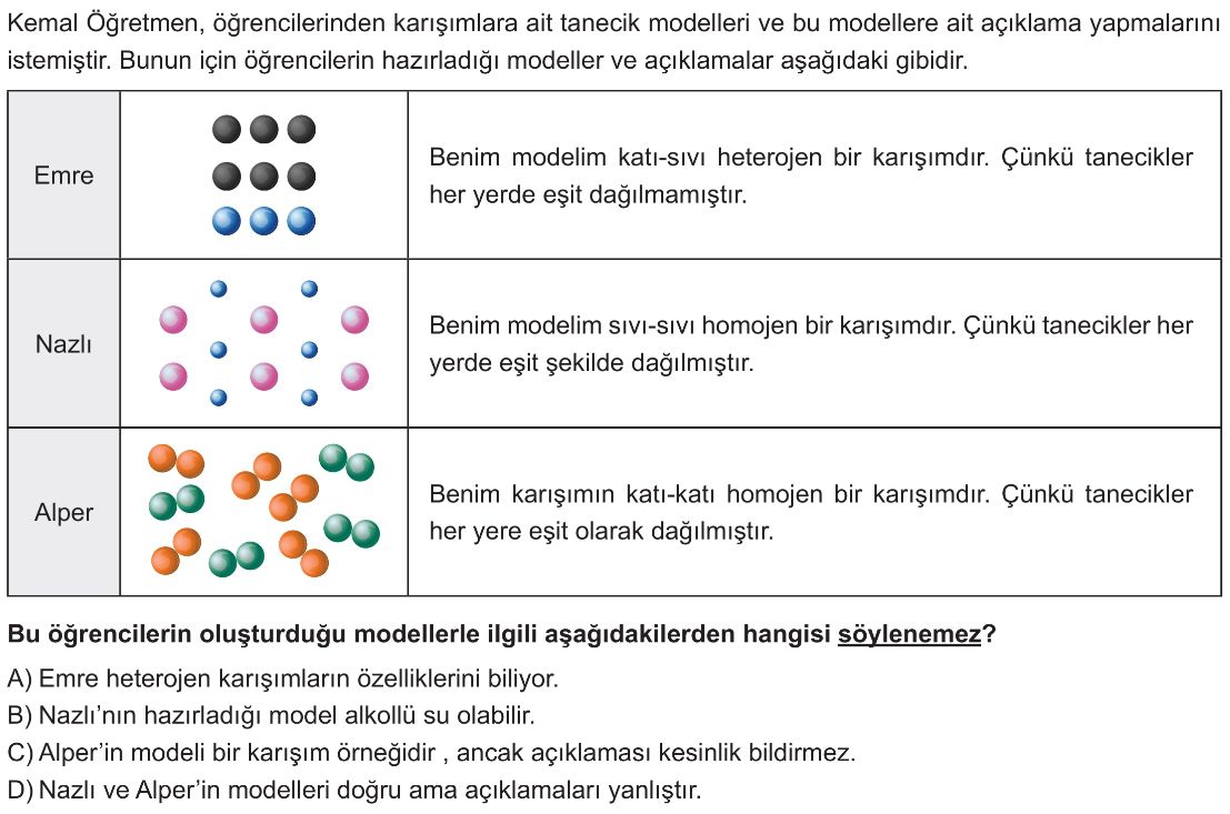 📝7. Sınıf Saf Madde ve Karışımlar Test 3