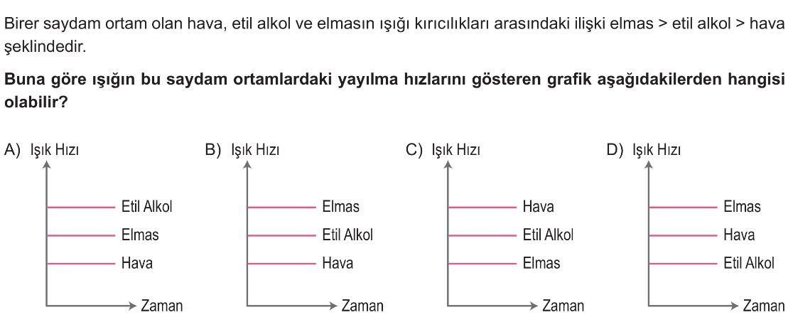7. Sınıf Işığın Kırılması ve Mercekler Test 1