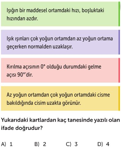 7. Sınıf Işığın Madde ile Etkileşimi Ünite Değerlendirme Test 3