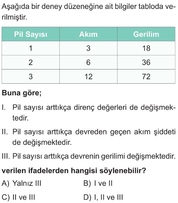 📝7. Sınıf Elektrik Akımı ve Gerilim Test 3