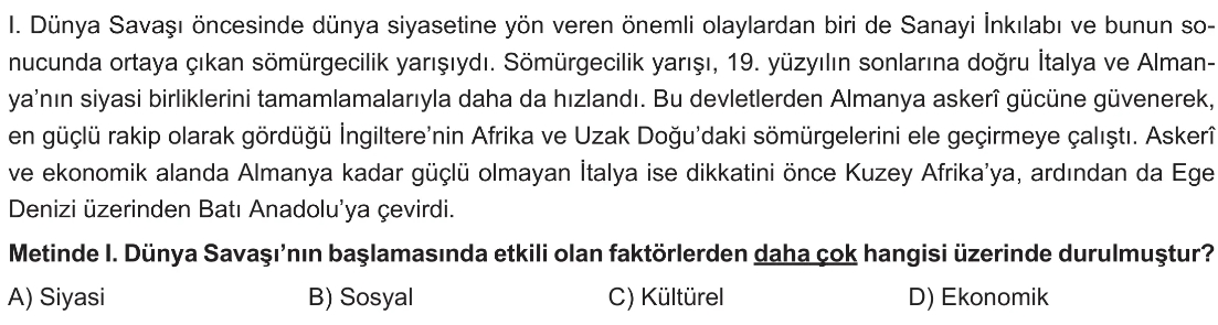 8. Sınıf Lgs 1. Dünya Savaşı Test 2