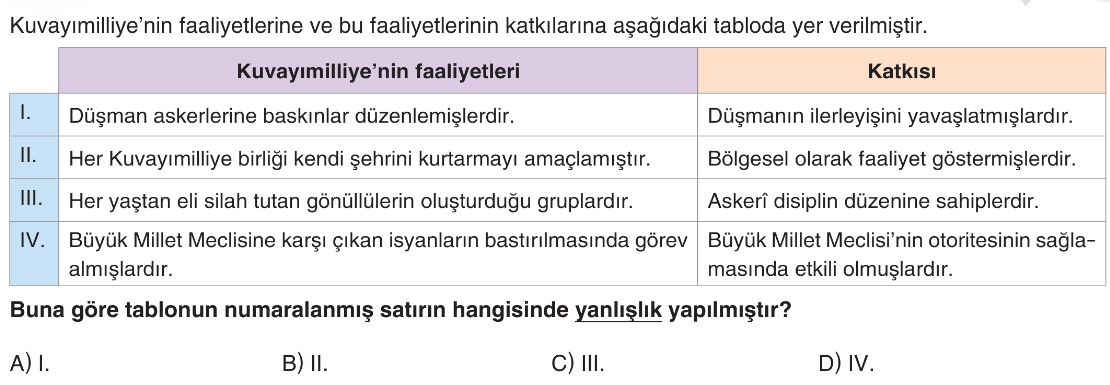 8. Sınıf Lgs Kuvayi Milliye Hareketi ve Cemiyetler Test 3