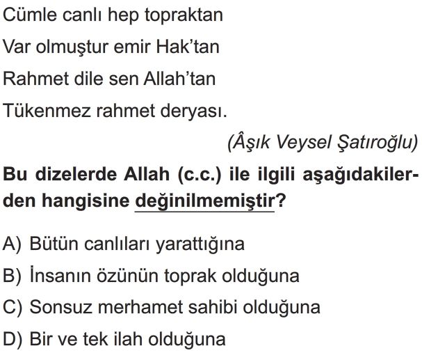 5. Sınıf Allah İnancı Ünite Değerlendirme Test 11