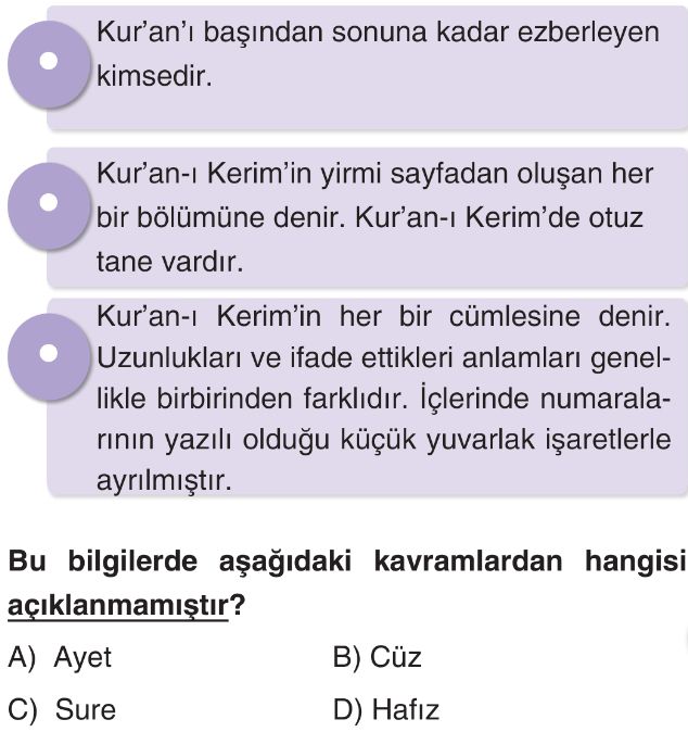 5. Sınıf Kur'an-ı Kerim'in İç Düzeni Test 2