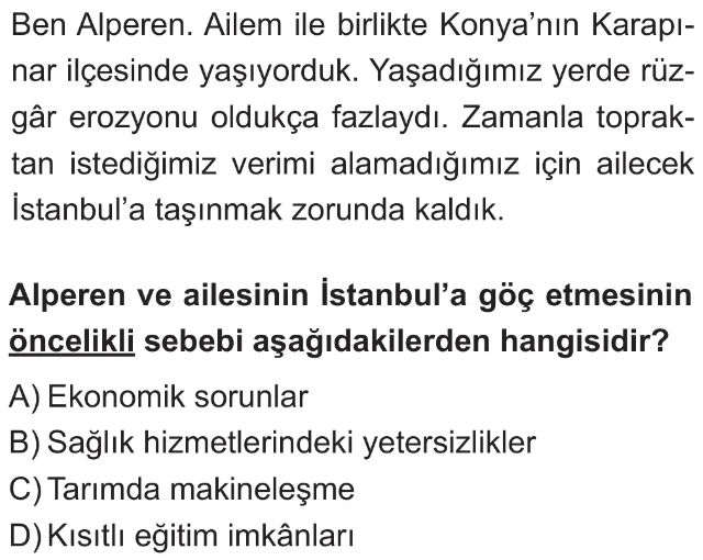 7. Sınıf Nedenleriyle ve Sonuçlarıyla Göç Test 5