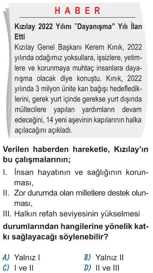 📝7. Sınıf Vakıf Demek, Medeniyet Demek (Sosyal Hayatta Vakıfların Yeri) Test 3