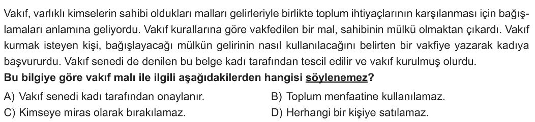7. Sınıf Vakıf Demek, Medeniyet Demek (Sosyal Hayatta Vakıfların Yeri) Test 2