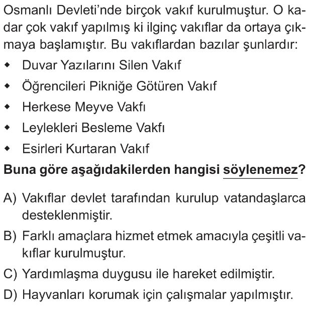 📝7. Sınıf Vakıf Demek, Medeniyet Demek (Sosyal Hayatta Vakıfların Yeri) Test 4