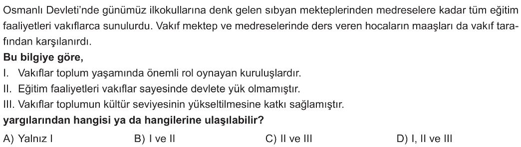 📝7. Sınıf Vakıf Demek, Medeniyet Demek (Sosyal Hayatta Vakıfların Yeri) Test 6