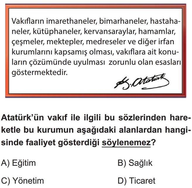 📝7. Sınıf Vakıf Demek, Medeniyet Demek (Sosyal Hayatta Vakıfların Yeri) Test 6