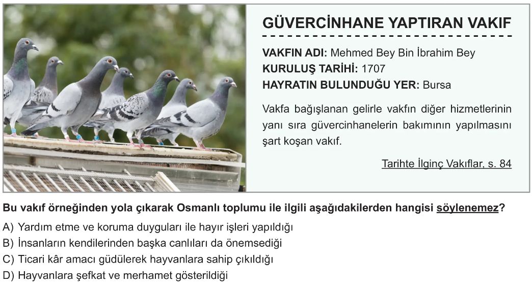 7. Sınıf Vakıf Demek, Medeniyet Demek (Sosyal Hayatta Vakıfların Yeri) Test 5