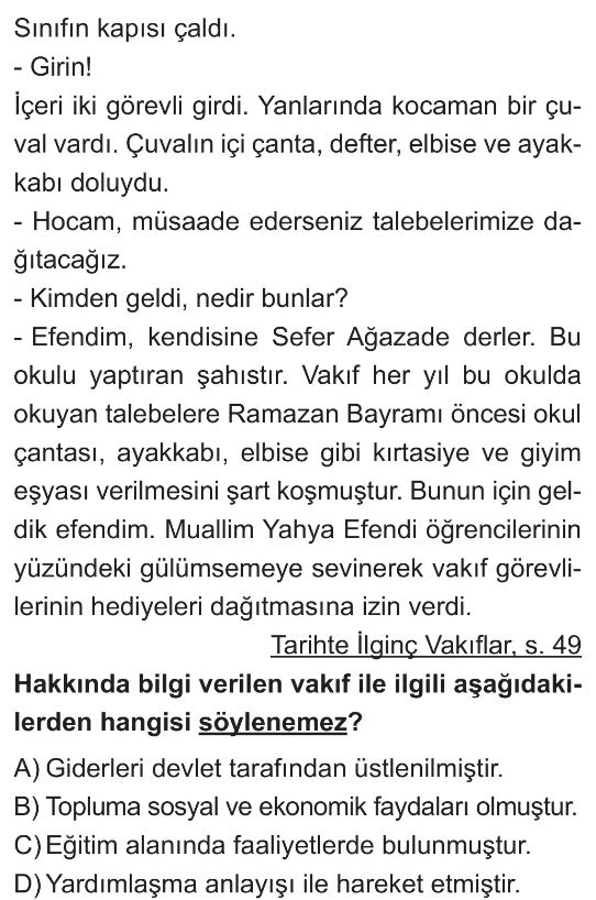 📝7. Sınıf Vakıf Demek, Medeniyet Demek (Sosyal Hayatta Vakıfların Yeri) Test 4