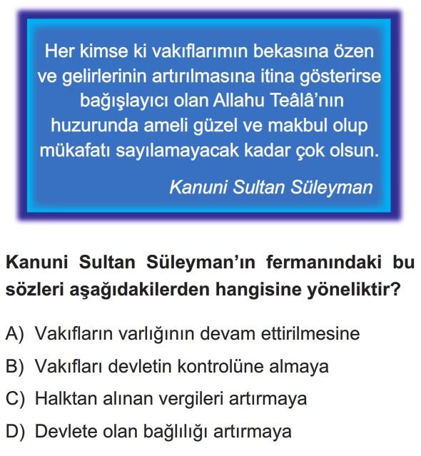 7. Sınıf Vakıf Demek, Medeniyet Demek (Sosyal Hayatta Vakıfların Yeri) Test 6