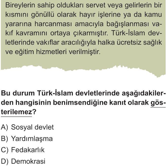 7. Sınıf Vakıf Demek, Medeniyet Demek (Sosyal Hayatta Vakıfların Yeri) Test 6