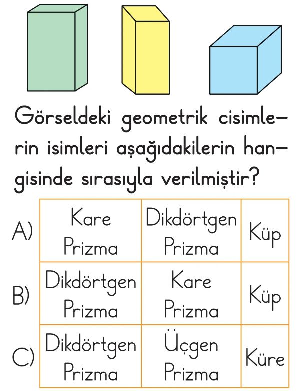 2. Sınıf Geometrik Cisimler ve Şekiller Test 4