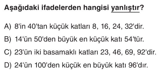 6. Sınıf Çarpanlar ve Katları Test 5