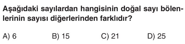 6. Sınıf Çarpanlar ve Katları Test 6
