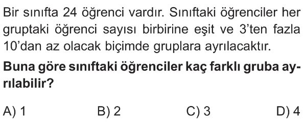 6. Sınıf Çarpanlar ve Katları Test 9