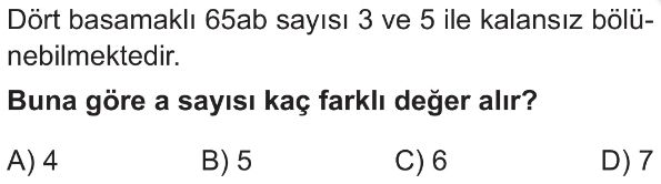 6. Sınıf Kalansız Bölünebilme (Bölünebilme Kriterleri) Test 2