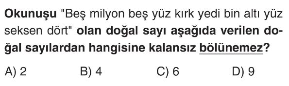 6. Sınıf Kalansız Bölünebilme (Bölünebilme Kriterleri) Test 4