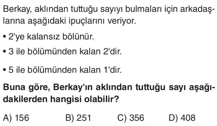 6. Sınıf Kalansız Bölünebilme (Bölünebilme Kriterleri) Test 6