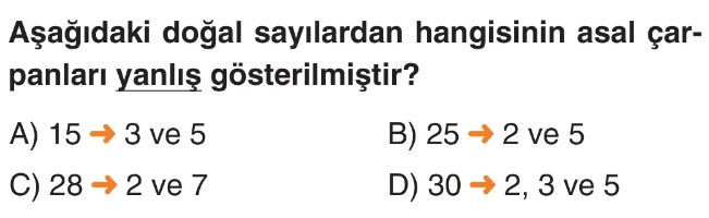 6. Sınıf Asal Sayılar ve Asal Çarpanlar Test 2
