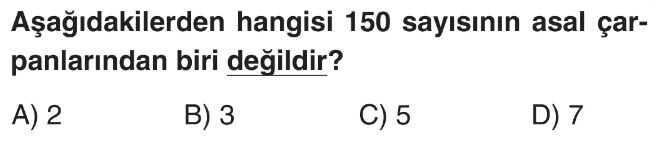 6. Sınıf Asal Sayılar ve Asal Çarpanlar Test 3