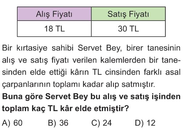 6. Sınıf Asal Sayılar ve Asal Çarpanlar Test 3