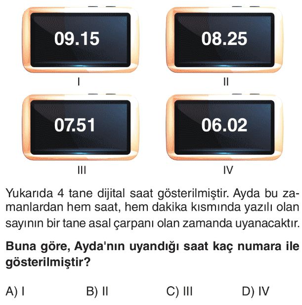 6. Sınıf Asal Sayılar ve Asal Çarpanlar Test 3