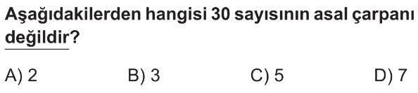 6. Sınıf Asal Sayılar ve Asal Çarpanlar Test 4