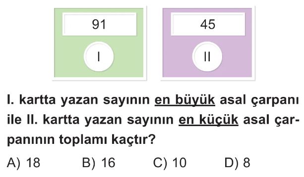 6. Sınıf Asal Sayılar ve Asal Çarpanlar Test 6