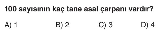 6. Sınıf Asal Sayılar ve Asal Çarpanlar Test 6