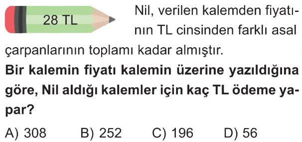 6. Sınıf Asal Sayılar ve Asal Çarpanlar Test 6
