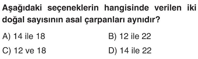 6. Sınıf Asal Sayılar ve Asal Çarpanlar Test 6