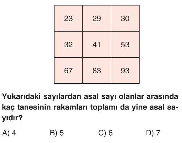 6. Sınıf Asal Sayılar ve Asal Çarpanlar Test 7